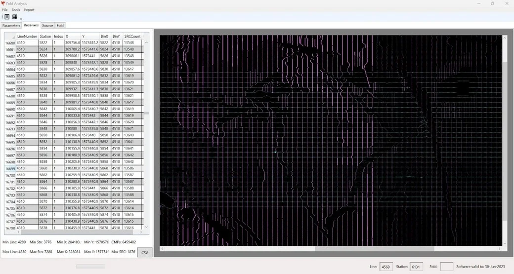 Firstly, it can display a fold plot given receiver and source inputs either in RIT/SIT format or SPS. If no cross-reference file is supplied, offsets can be limited in various of ways to calculate theoretical fold.