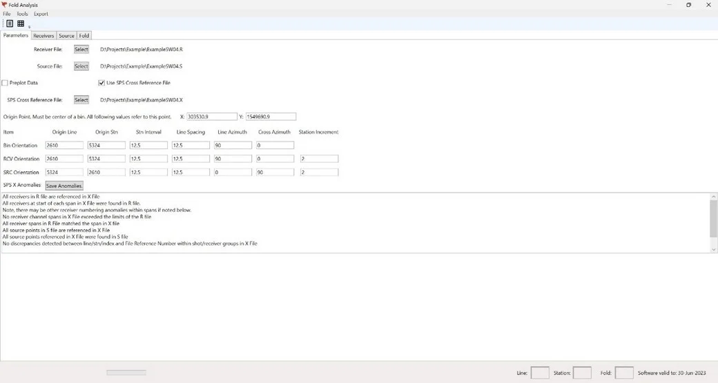 Finally, if a cross-reference (SPS-X) file is supplied, the validity of the file can be checked regarding references to receiver and source files.